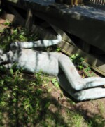 Die Figur kehrte zweimal zu Reparaturzwecken in Lutz Hollands Besitz zurück: Nach der ersten Beschädigung nötigte man ihn, die Figur zum Schutz gegen Vandalismus mit einer Gipsmasse auszugießen. Als die Figur ein zweites Mal zu ihm zurückkehrte, war es eben dieser Umstand, daß sie innen nicht mehr hohl war, der eine erneute Reparatur verhinderte. Im Juni 2012 verließ Lutz Holland sein Grundstück für immer; der Sitzende Jüngling blieb im Garten unter der Lärche liegend und ohne Füße zurück...