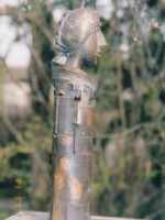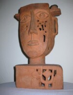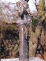 1981-83 - Maße: 63 x 17 x 15 cm - Besitzer: Kunstmuseum Kloster Unser Lieben Frauen - Ausstellungen: Galerie Junge Kunst Frankfurt (Oder) 1985-86, Galerie Talstrasse Halle (Saale) 1997 - Auch diese Plastik wurde im Verlauf der Jahre weiterbearbeitet, wie man an der aufgebrachten Treibarbeit in Silberblech ersehen kann: es sind darauf die Zeichen der vier Evangelisten abgebildet.