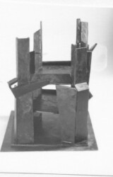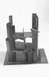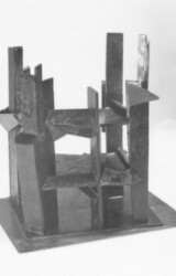 1986-87 - Maße gesamt: unbekannt. Dies ist die Plastik, welche für mein Empfinden Lutz Hollands Meisterwerk seiner Gußkunst darstellt, denn sie wurde - wie viele Fotos belegen - in EINEM Guß gegossen, und anschließend aus mir unbekannten Gründen zersägt... Der Mond wurde an Prof. Artur Winter verkauft und befindet sich im Besitz seiner Tochter in Südfrankreich. Das später so benannte Architekturmodell befindet sich in Privatbesitz.